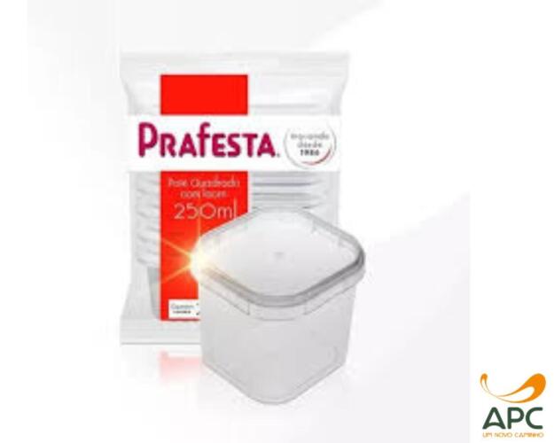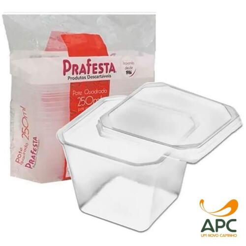POTE QUADRADO COM TAMPA PRAFESTA 250ML C/20UNI